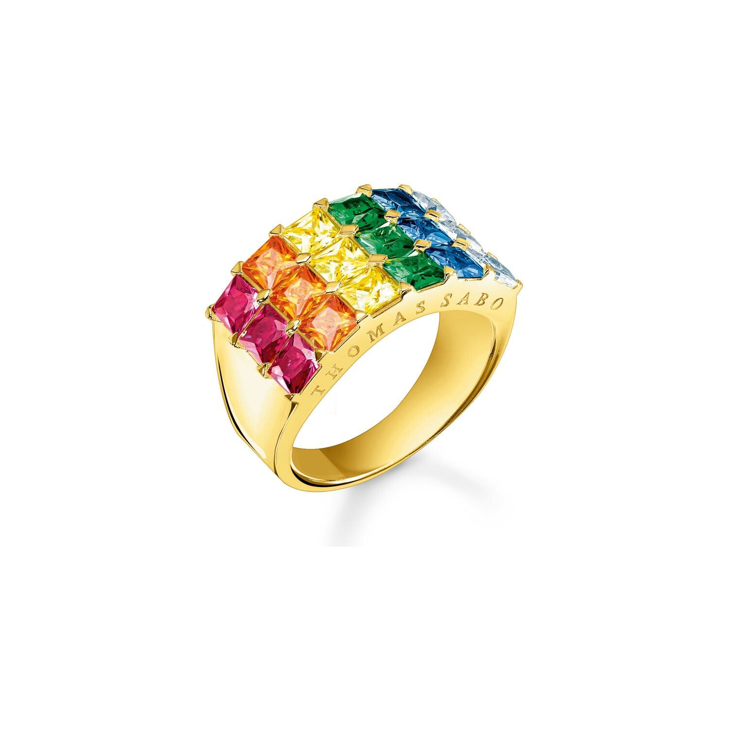 Sterling Silver Bague Thomas Sabo Sterling Silver en argent doré, céramique, coridon, spinelle, pierres synthétiques et oxyde de zirconium, taille 54