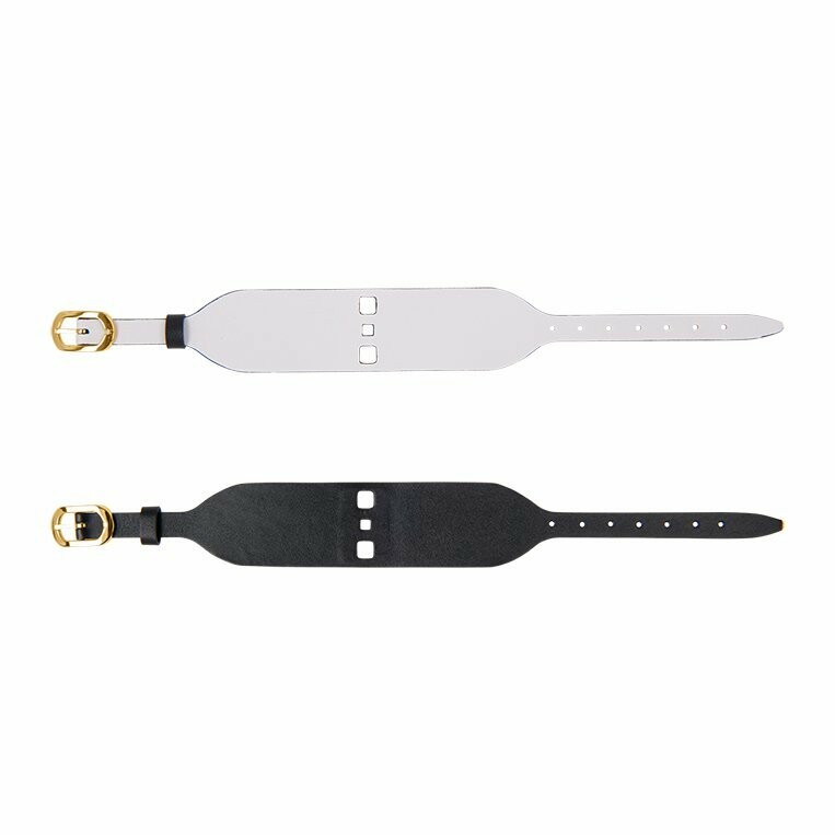 Les Coutures Bracelet de montre Les Georgettes Couture en cuir noir / blanc, boucle dorée, largeur 25mm